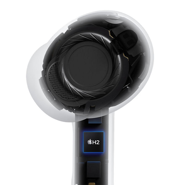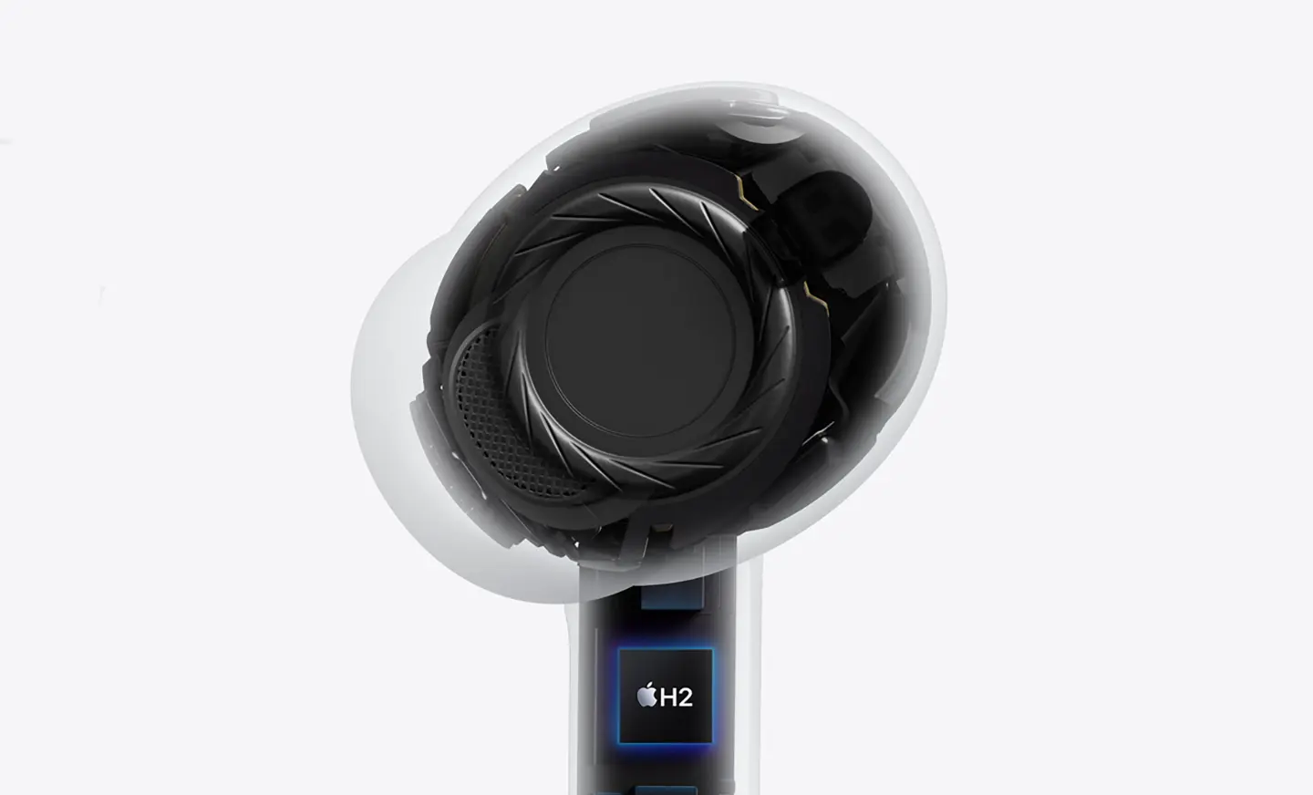 Новая архитектура многопортовой акустики усиливает глубину баса, расширяет звуковую сцену и подчёркивает чистоту вокала. Благодаря чипу Apple H2 каждый трек раскрывается с объёмом, детализацией и мощью — даже в любимых композициях слышны новые нюансы.