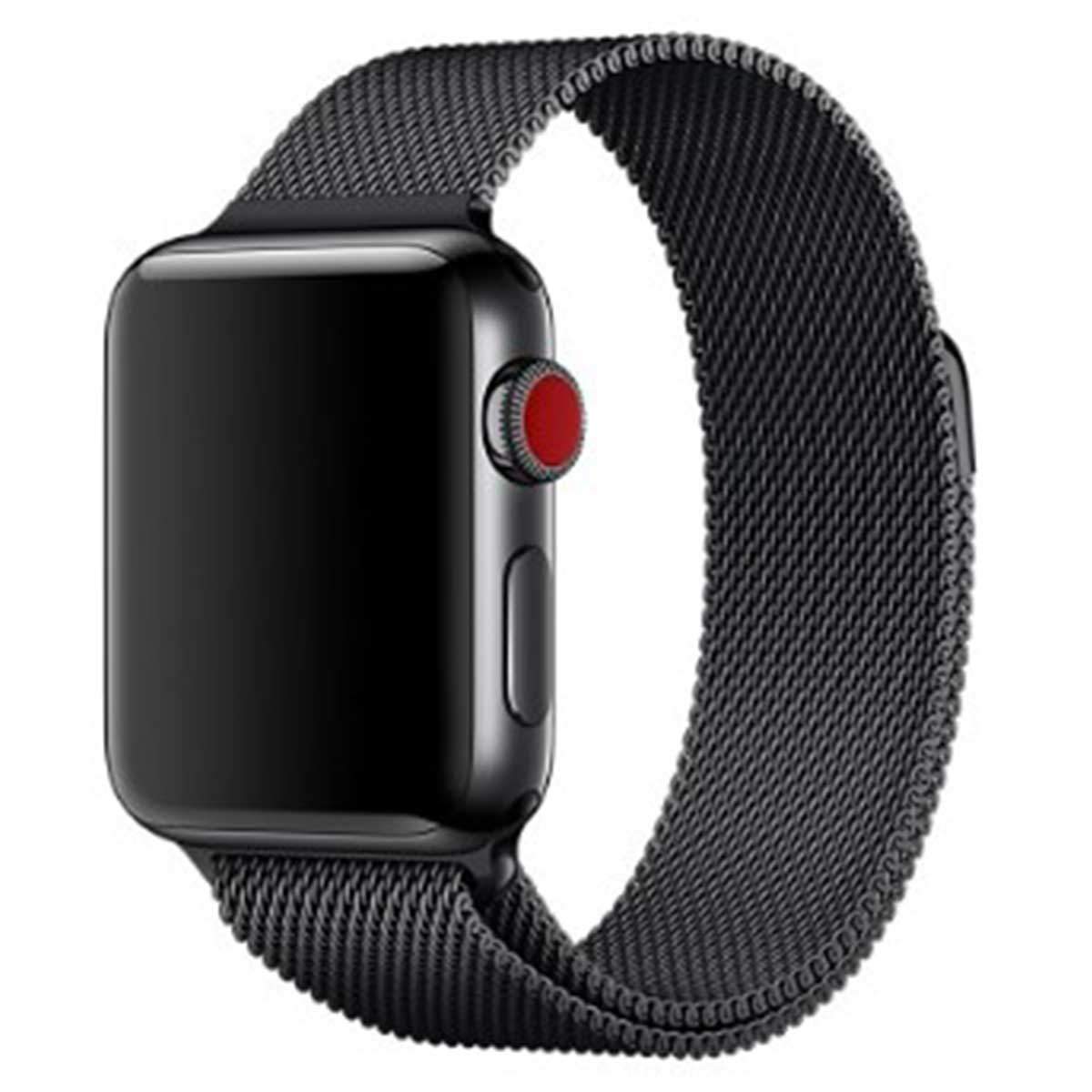 - Миланский сетчатый браслет для Apple Watch 38 мм, стальной, чёрный.