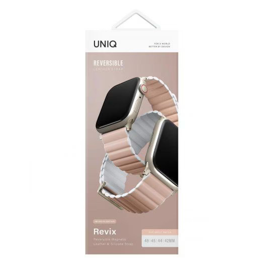 Ремешок Uniq Revix Premium Ed. для Apple Watch 49/45/44/42 mm цвета розовый/белый — это стильный и удобный аксессуар для вашего Apple Watch. Ремешок выполнен из высококачественной кожи и силикона, что обеспечивает комфортное ношение на протяжении всего дня. Он не скользит на руке и не вызывает раздражения кожи. Ремешок Revix Premium Ed. имеет уникальный дизайн, который позволяет ему выделяться на фоне других ремешков.