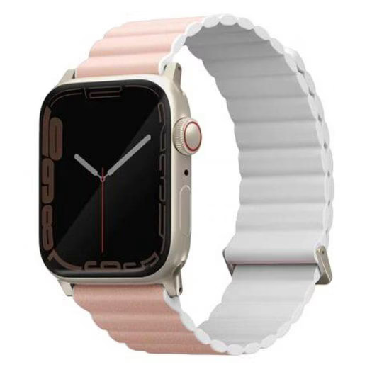 Ремешок Uniq для Apple Watch 49/45/44/42 mm Revix Premium Ed. Leather/Silicone Blush Розовый/Белый