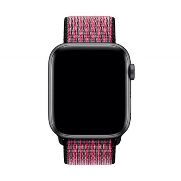 - Спортивный ремешок Nike для Apple Watch 44 мм, нейлон, «розовый всплеск / пурпурная ягода».