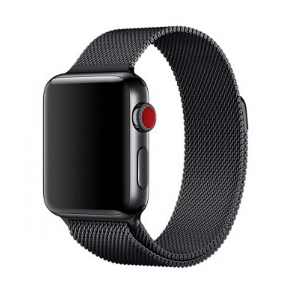 - Миланский сетчатый браслет для Apple Watch 44 мм, стальной, чёрный.
