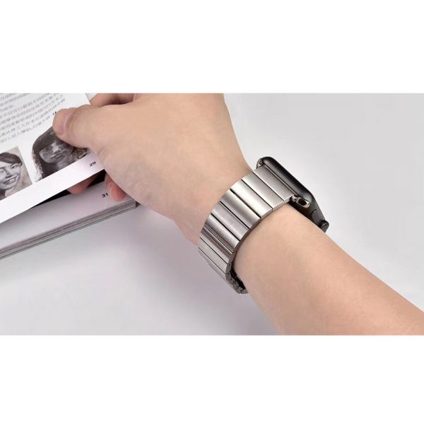 Apple Watch – смарт часы подходящие для различных образов жизни. Каждый подстраивает их под себя, устанавливая приложения или меняя их стиль, используя дополнительные аксессуары. Они могут быть спортивными, повседневными или же классическими. Классический стиль – это всегда элегантность, утонченность, качественные материалы и строгие цвета. Мы рады представить вам линейку ремешков COTEetCI W25. Ремешок выполнен из прочной нержавеющей стали, которая не потеряет свой блеск и цвет даже спустя длительное время. Аксессуар имеет регулируемый размер и стальную застежку-бабочку. Она надежно удерживает часы на руке и при необходимости позволяет расстегнуть ремень одной рукой.