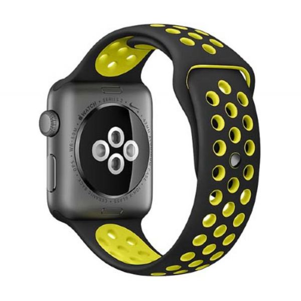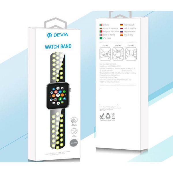 - Ремешок Devia Deluxe Series Sport 2 Band для Apple Watch 40 мм, силикон, жёлтый / чёрный.