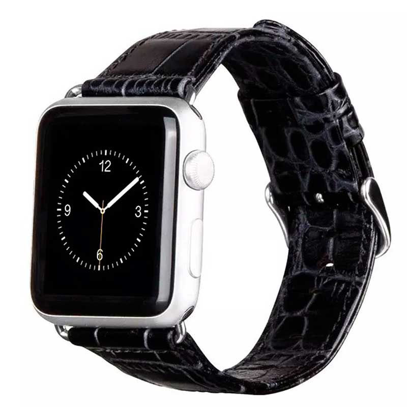 - Ремешок HOCO Crocodile Leather Watchband для Apple Watch 38 мм, натуральная кожа, чёрный.