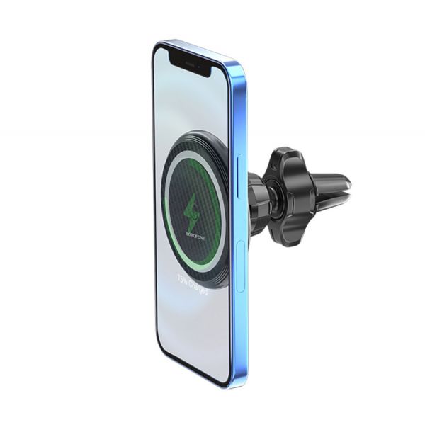 Предлагаем приобрести магнитный автомобильный держатель для смартфонов от компании BOROFONE. Модель BH45 Mobile с лёгкостью закрепляется в дефлектор воздуховода. Держатель получил поворотное крепление на шарнире, за счёт чего вы сможете легко расположить телефон, как в горизонтальном, так и в вертикальном положениях. Для комфортного использования смартфона в машине легко регулируется угол наклона. Аксессуар изготовлен из прочного поликарбоната и силикона. Автомобильный держатель поддерживает беспроводную зарядку MagSafe, поэтому быстро зарядит iPhone 12 и 13 серий.
