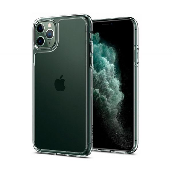 - Чехол-накладка Spigen Crystal Hybrid для iPhone 11 Pro Max, поликарбонат / полиуретан, прозрачный.