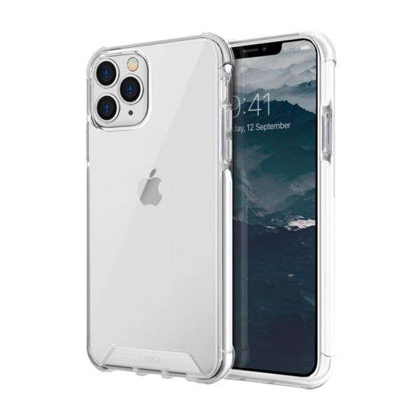- Чехол-накладка Uniq Combat для iPhone 11 Pro, поликарбонат / полиуретан, белый / прозрачный.