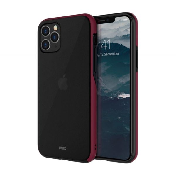 - Чехол-накладка Uniq Vesto для iPhone 11 Pro, поликарбонат, бордовый / прозрачный.
