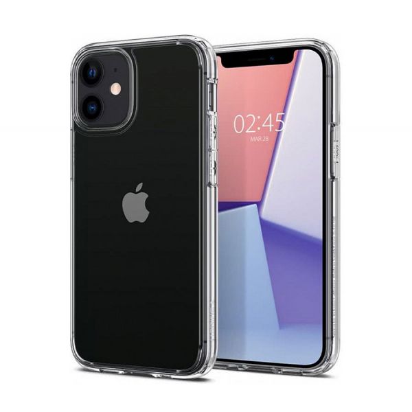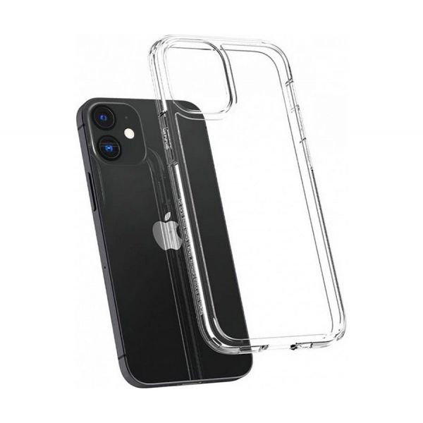 - Чехол-накладка Spigen Crystal Hybrid для iPhone 12 Mini, поликарбонат, прозрачный.