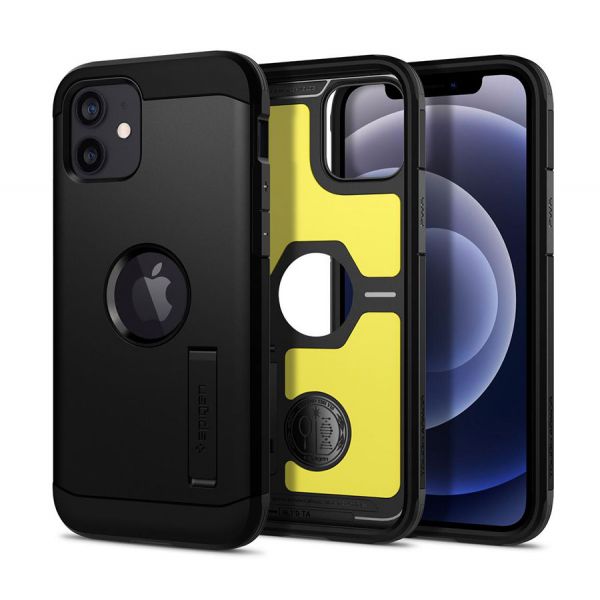 - Чехол-накладка Spigen Tough Armor для iPhone 12 Mini, поликарбонат / полиуретан, чёрный.
