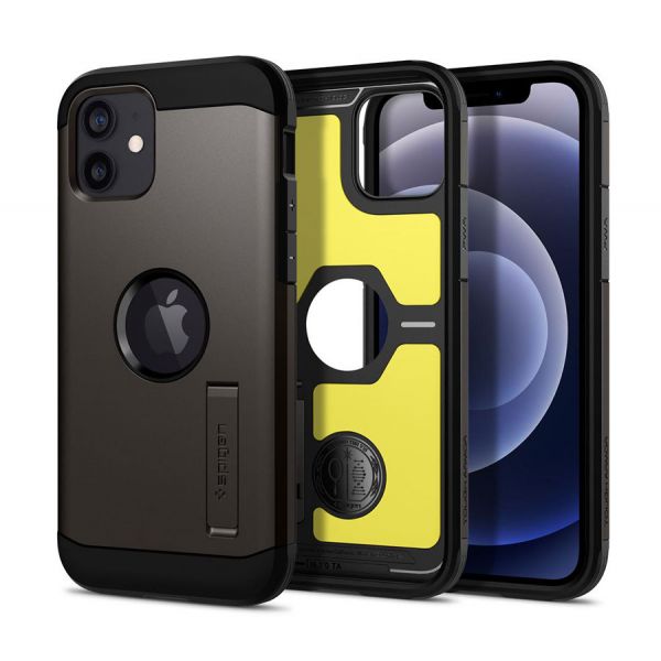 - Чехол-накладка Spigen Tough Armor для iPhone 12 Mini, поликарбонат / полиуретан, чёрный / тёмно-серый.