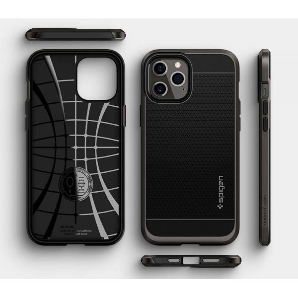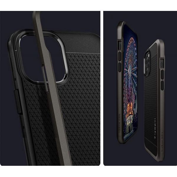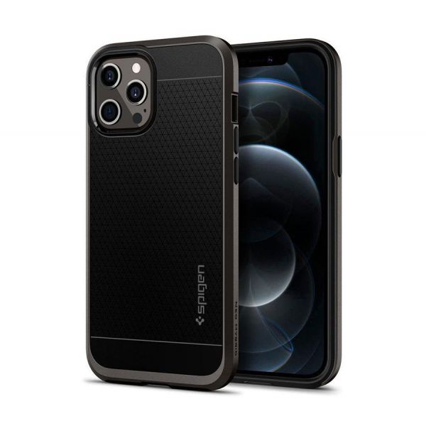 - Чехол-накладка Spigen Neo Hybrid для iPhone 12 Pro Max, полиуретан / поликарбонат, чёрный.