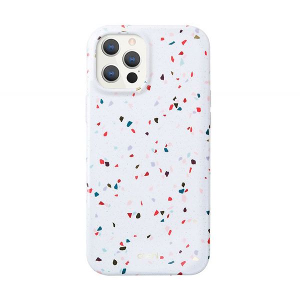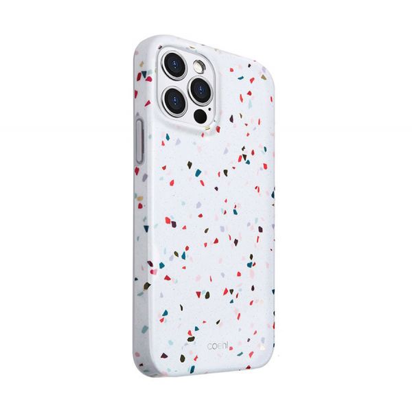 Чехол-накладка Uniq Coehl Terrazzo для iPhone 12 Pro Max с дизайнерским принтом, нанесённым по технологии IML. Принт сплавлен с материалом чехла, прочен и долговечен. Чехол надёжно защитит смартфон при падениях с высоты. Аксессуар плотно прилегает к поверхности корпуса устройства, легко надевается и снимается. При использовании накладки сохраняется полный доступ к разъёмам и камере смартфона, при этом повышается уровень защиты iPhone в непредвиденных ситуациях.