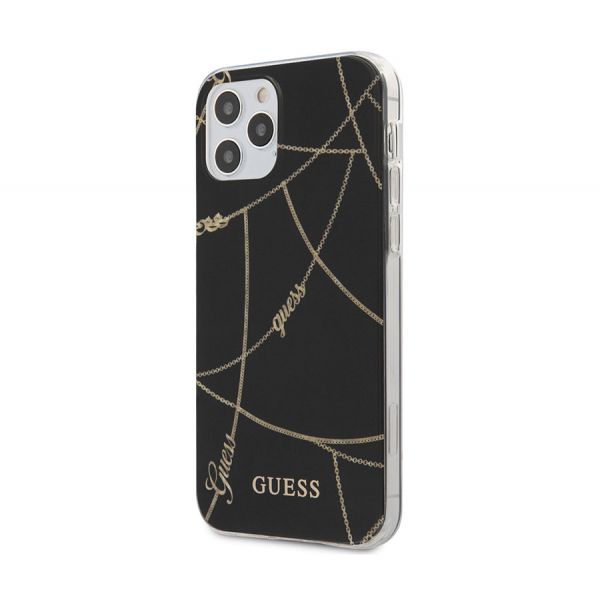 - Чехол-накладка Guess Chain design Hard для iPhone 12/12 Pro, полиуретан / поликарбонат, золотой / чёрный.