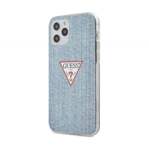 - Чехол-накладка Guess Denim Triangle для iPhone 12/12 Pro, полиуретан / поликарбонат, голубой.