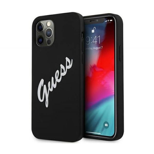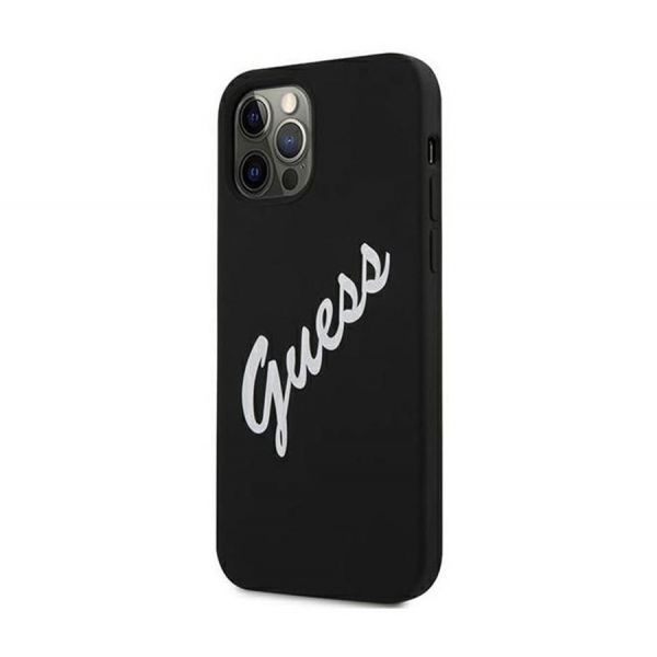 - Чехол-накладка Guess Liquid silicone Script logo для iPhone 12/12 Pro, силикон, чёрный / белый.