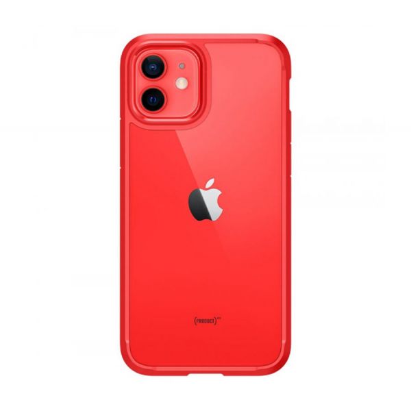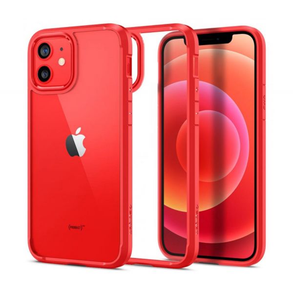 - Чехол-накладка Spigen Ultra Hybrid для iPhone 12/12 Pro, полиуретан / поликарбонат, красный / прозрачный.