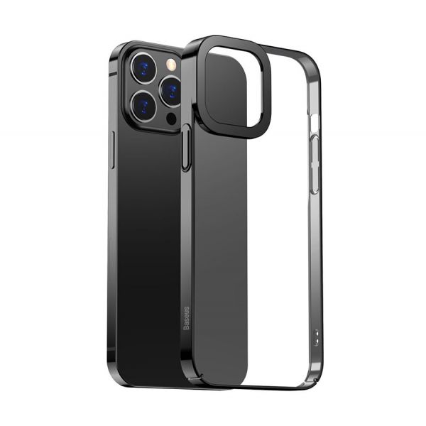 - Чехол-накладка Baseus Glitter Hard PC Case для iPhone 13 Pro Max, металл / поликарбонат, чёрный / прозрачный.