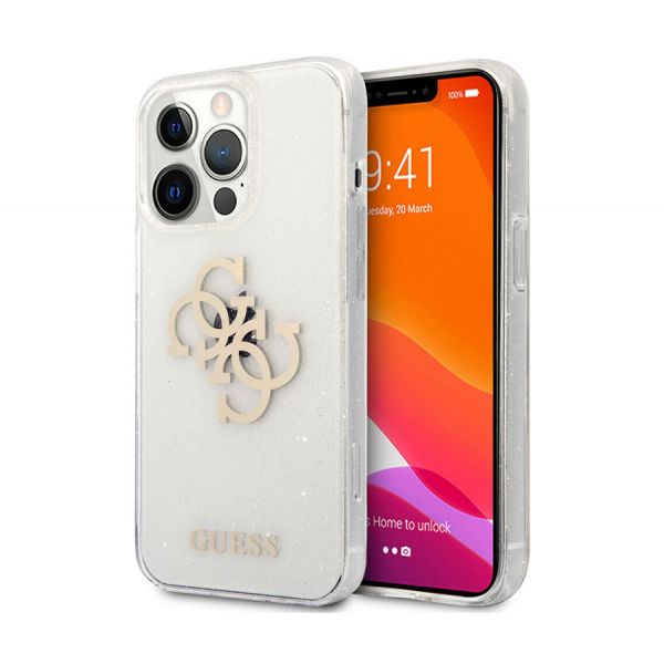 - Чехол-накладка Guess TPU 4G Big logo Hard Glitter для iPhone 13 Pro Max, полиуретан, прозрачный.