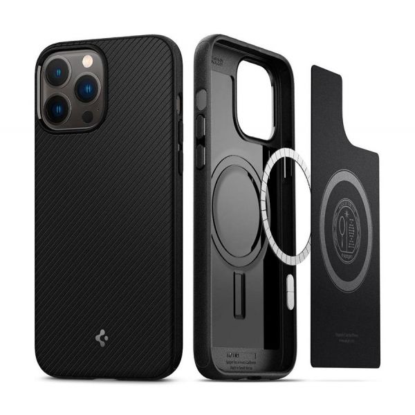 - Чехол-накладка Spigen Mag Armor для iPhone 13 Pro Max, полиуретан / поликарбонат, чёрный.