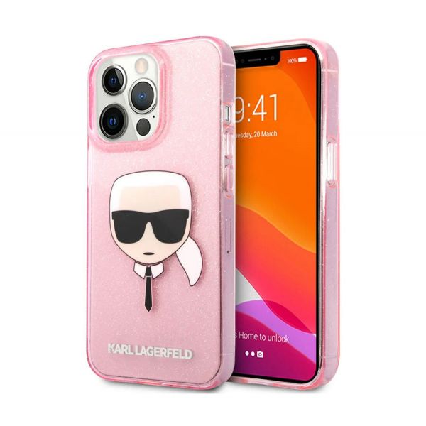 - Чехол-накладка Karl Lagerfeld Glitters для iPhone 13 Pro, полиуретан, розовый.