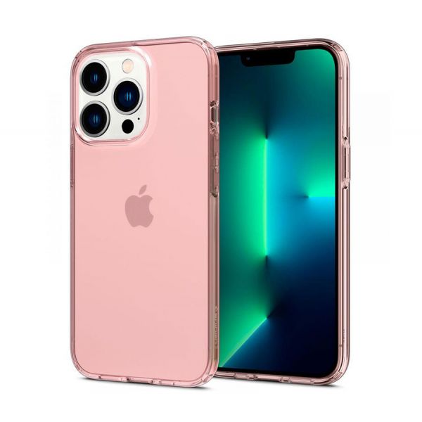 - Чехол-накладка Spigen Crystal Flex для iPhone 13 Pro, полиуретан, прозрачный / розовый.