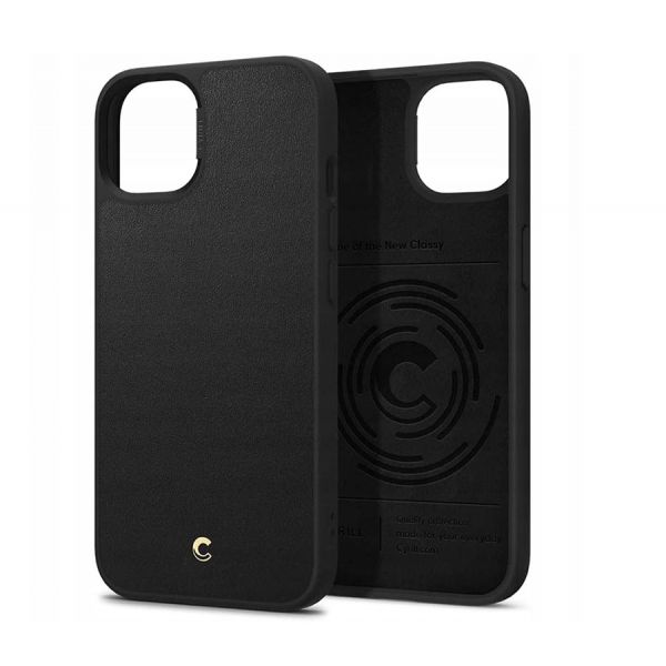 - Чехол-накладка Spigen Cyrill Leather Brick для iPhone 13, полиуретан / эко-кожа, чёрный.