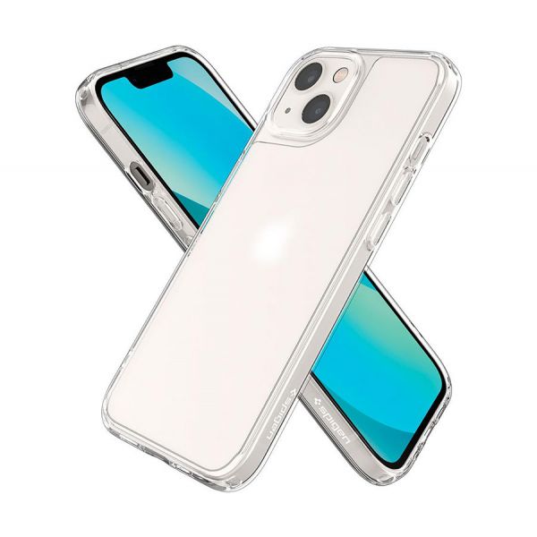 - Чехол-накладка Spigen Quartz Hybrid для iPhone 13, полиуретан / стекло, матовый, прозрачный.
