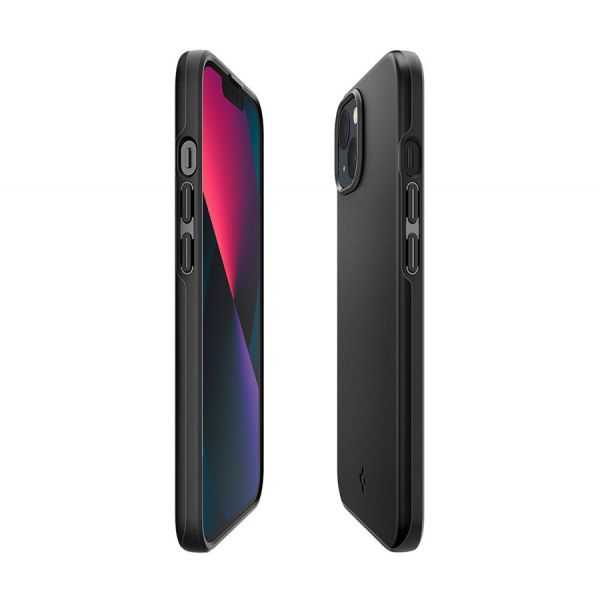 - Чехол-накладка Spigen Thin Fit для iPhone 13, поликарбонат, чёрный.