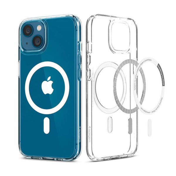 - Чехол-накладка Spigen Ultra Hybrid MagSafe для iPhone 13, полиуретан / поликарбонат, прозрачный.