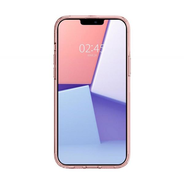 - Чехол-накладка Spigen Ultra Hybrid для iPhone 13, полиуретан / поликарбонат, розовый / прозрачный.