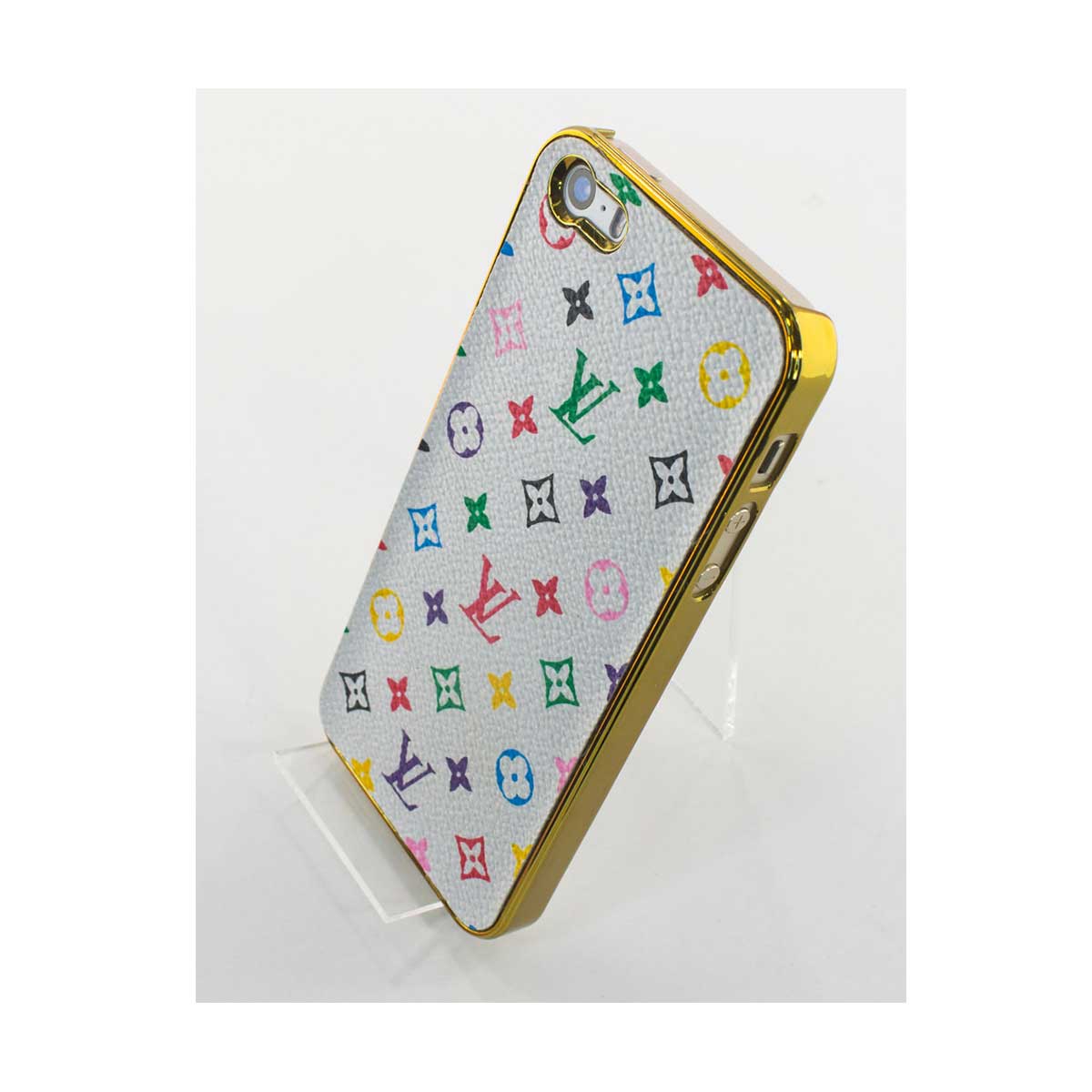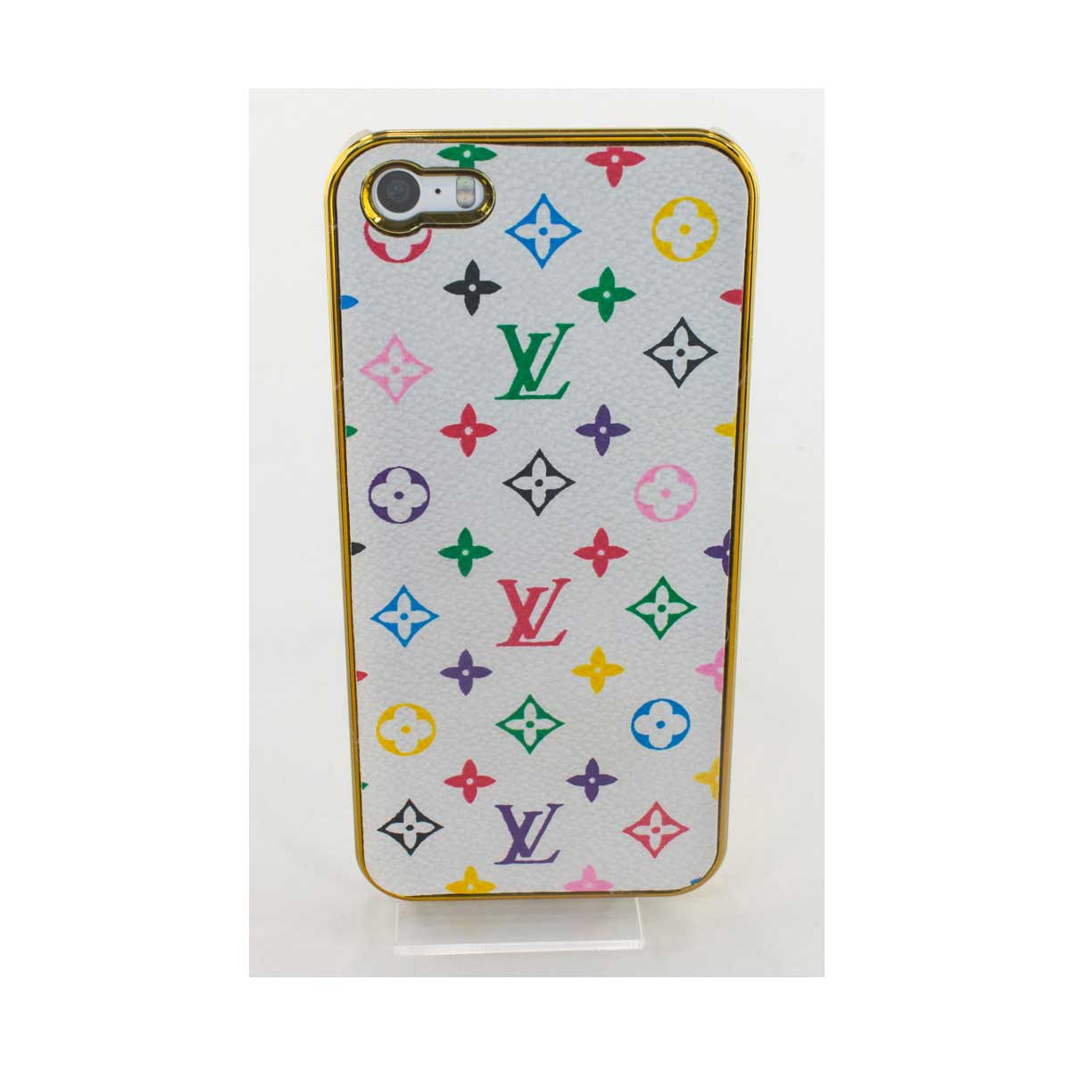 Чехол-накладка LV logo gradual change case для iPhone 5/5s/SE, поликарбонат / эко-кожа, белый / золотистый