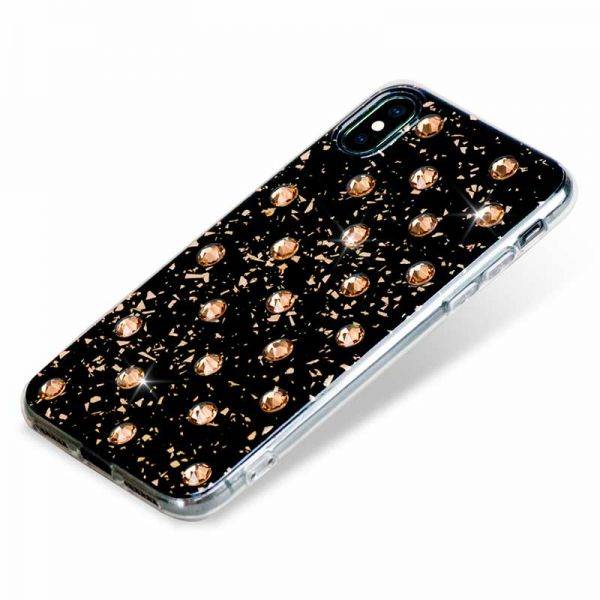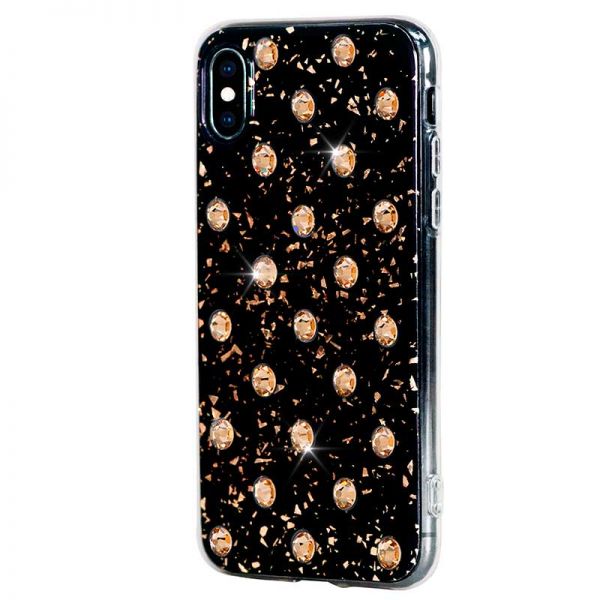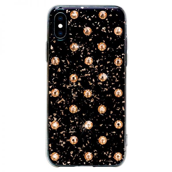 - Чехол-накладка Bling My Thing, Extravaganza Polka для iPhone X/Xs, с кристаллами Swarovski, чёрный / золотой.