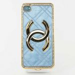 Чехол-крышка Luxury "Chanel" для iPhone 4/4S, голубой-золотой