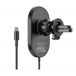 Автодержатель с БЗУ HOCO CA91 Magic магнитный, в воздуховод, 15W, серый