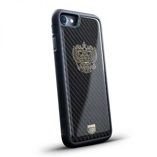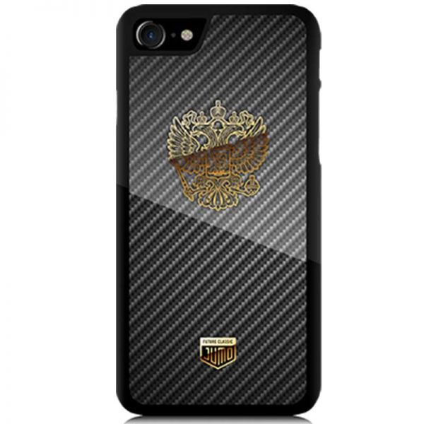 Эксклюзивный чехол Jumo Case для iPhone 7/8, карбон, никель с позолотой 24К, «Герб РФ»
