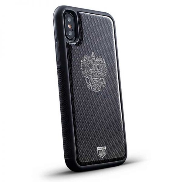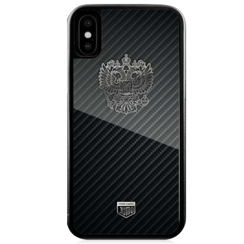 Эксклюзивный чехол Jumo Case для iPhone X/Xs, карбон, никель с серебрением, «Герб РФ»