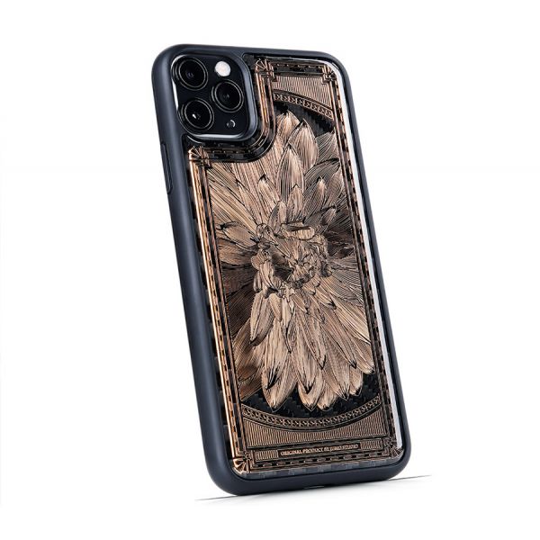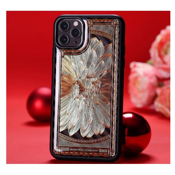 - Эксклюзивный чехол Jumo Case для iPhone 11 Pro Max, серия "Арт Деков", цветок, карбон, никель с позолотой.