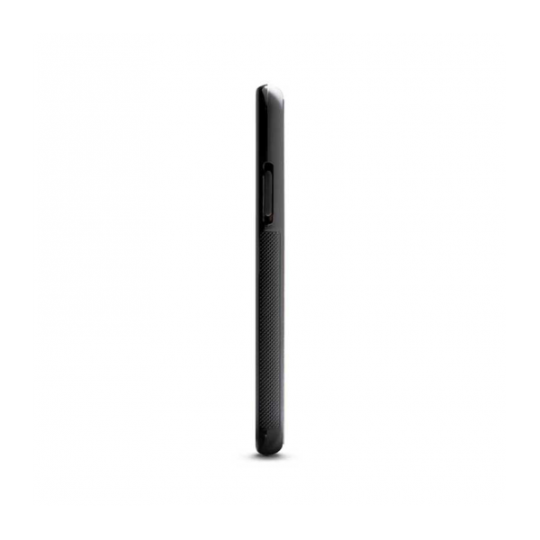 Кейс имеет основу из touché-cover резины и карбоновой вставки, покрытой слоем ювелирной смолы. Внутри чехла мягкая подложка из алькантары. Данная конструкция обеспечивает надежную защиту смартфона от повреждений и деформации по всему периметру. С лицевой стороны расположен эластичный кант шириной 0,7 мм, препятствующий соприкосновению экрана с плоскими поверхностями.