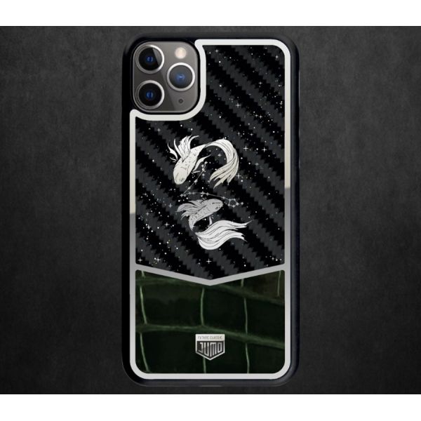 - Эксклюзивный чехол Jumo Case для iPhone 11 Pro Max, карбон, кожа крокодила, "Рыбы".