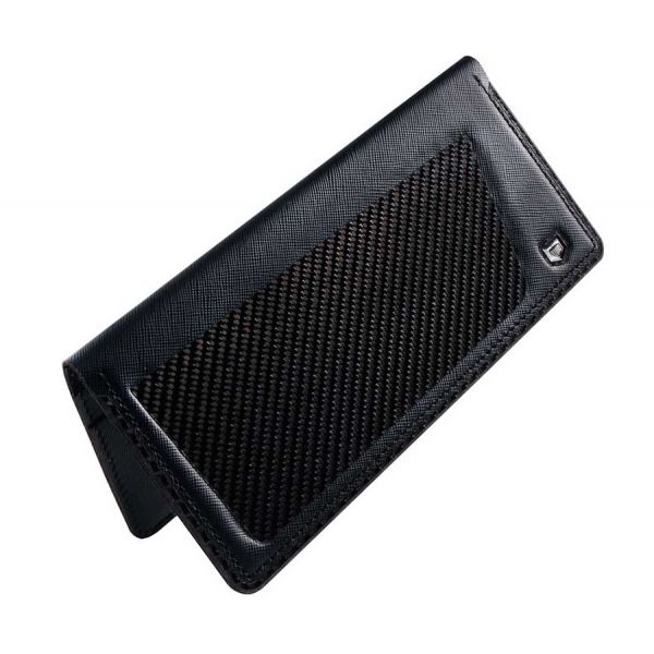 Купюрник изготовлен вручную и идеально сшит. В качестве основного материала представлена итальянская кожа Saffiano, а так же купюрник имеет вставку из настоящего карбона, покрытого ювелирной смолой. Плюс ко всему, текстильные подкладка из алькантары делает аксессуар приятным на ощупь и надежно поддерживает карты внутри отсеков.
