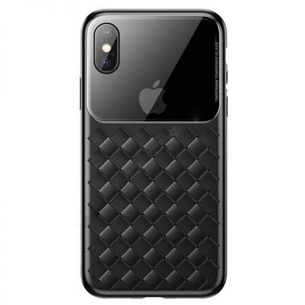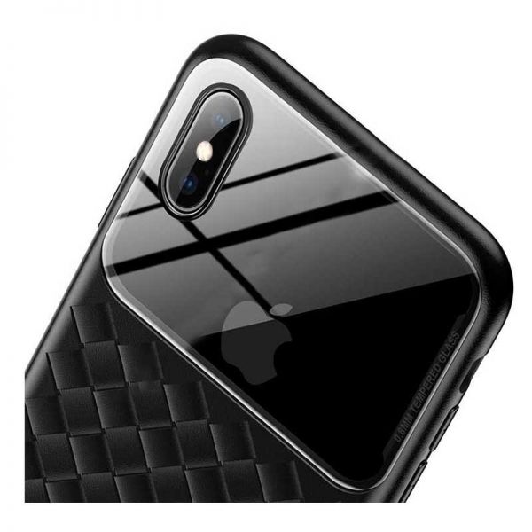 Чехол-накладка Baseus Glass & Weaving для iPhone X/Xs, стекло / полиуретан, чёрный