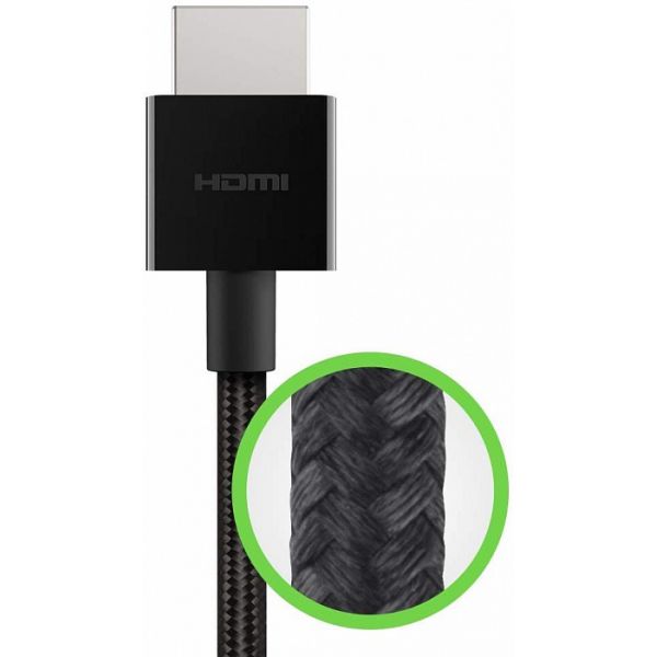 Стильный и качественный кабель – это незаменимый аксессуар для вашего ноутбука. Вы можете наслаждаться исключительным видео и аудио с ноутбука с поддержкой HDMI, медиаплеера или игровой консоли на домашнем телевизоре высокой четкости. Belkin Ultra High Speed HDMI выполнен из надежной конструкции и имеет двойной слой защиты, оплетка кабеля изготовлена из прочного плетеного материала. Корпус коннектора выполнен из поликарбоната. Очень простое подключение двух устройств. Прочная оплетка гарантирует долгий срок службы аксессуара.