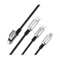 Дата-кабель Hoco U17 Capsule зарядит одновременно три гаджета. Поддерживаются интерфейсы Lightning, Micro-USB и Type-C. Переходник аксессуара выполнен из меди. Сила выходного тока кабеля составляет 2.1 ампер. Коннектор USB-A для подключения к ноутбуку или адаптеру питания получил угол наклона 90 градусов. Штекеры изготовлены из цинка и получили вид капсулы. Кабель получил тканевую оплётку, которая защищает аксессуар во время переноски и эксплуатации.Преимущества кабеля: