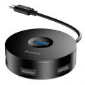 Хаб Baseus Round Box HUB, с Type-C на 1 х USB 3.0, 3 х USB 2.0, чёрный