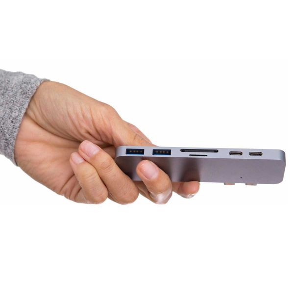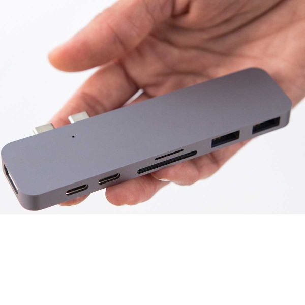 Если у вас есть экосистема из продуктов Apple, то для синхронизации всех устройств вам наверняка понядобится хаб. Мы рады представить вам, самый компактный и быстрый (50 Гбит / с) HyperDrive Thunderbolt 3 USB-C Hub for Macbook Pro специально для Вашего Macbook Pro (2016). Аксессуар превращает два USB-C порта Вашего Macbook в целых семь, а именно: HDMI, Thunderbolt 3, USB-C, SD, microSD, 2 x USB 3.1 Gen 1. Функциональность маленького помощника HyperDrive позволяет в одно мгновение подключать к Вашему MacBook разнообразные гаджеты, поддерживающие сопряжение через стандартный USB. Это могут быть флешки, цифровые камеры, смартфоны, планшеты, видеокамеры, электронные книжки и многое, многое другое. С помощью USB-хаба можно не только подключать девайсы для синхронизации данных, но и пополнять заряд их аккумуляторов от мощного MacBook Pro (2016).