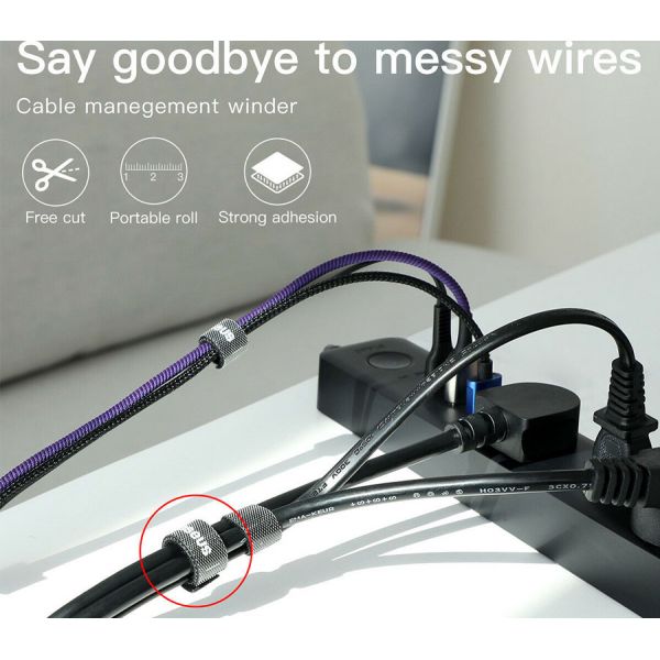 Baseus Rainbow Circle Velcro Straps — это органайзер проводов, который выглядит как лента-липучка. Аксессуар позволит быстро и без особых затрат навести порядок на вашем рабочем месте, скрепив шнуры вместе. Он также отлично подойдет для компактного хранения кабелей-переходников или зарядных кабелей. Ленту можно нарезать на отрезки необходимой длины. Высокая степень адгезии позволит удерживать вместе даже толстые кабели.