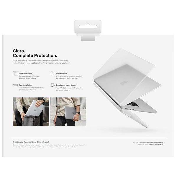 Матовый корпус плотно прилегает к MacBook и сохраняет его тонкий профиль. Лёгкий и аккуратный, Claro подчёркивает эстетику устройства — без утолщения и лишних деталей.