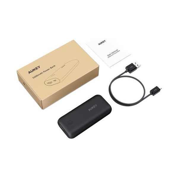 Внешний аккумулятор Aukey, USB-A, Micro-USB, 5000 mAh, чёрный